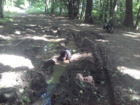 Zkoušky jsme zvládli na 45 bodů, výsledek nám ovlivnil pokažený aport. Nevadí, hlavně že to máme !